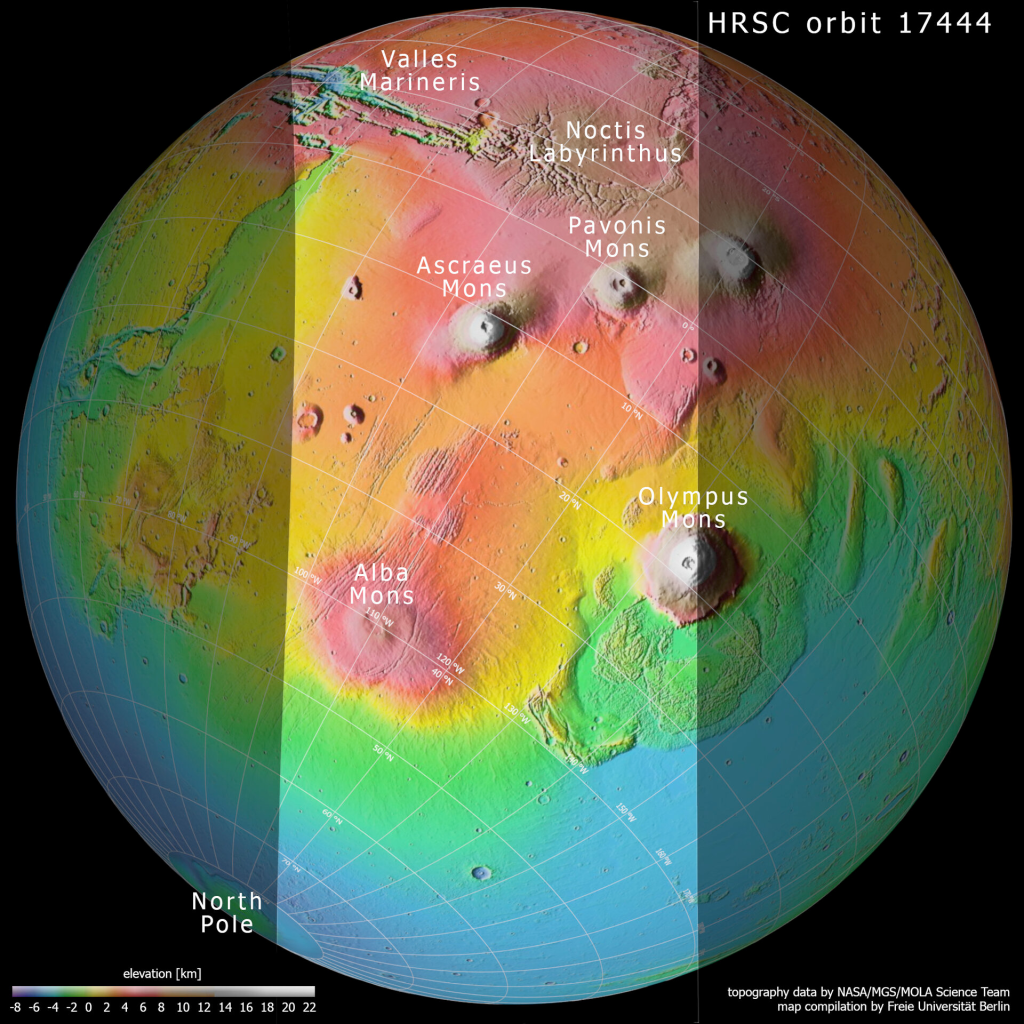 Frosty volcanoes discovered in Mars’s tropics, European Space Agency