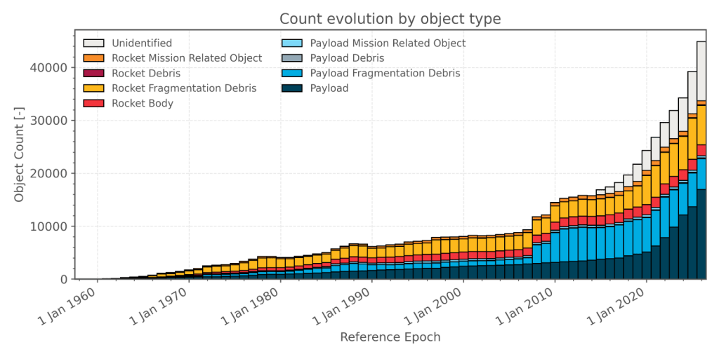 Desde el lanzamiento del primer satélite artificial oficialmente reconocido el 4 de octubre de 1957, la cantidad de basura espacial ha aumentado rápidamente. Según el Comité Interinstitucional de Coordinación de Desechos Espaciales (IADC), se considera basura espacial cualquier objeto artificial fuera de servicio, incluidos sus fragmentos, que se encuentre en órbita terrestre o ingresando a la atmósfera.