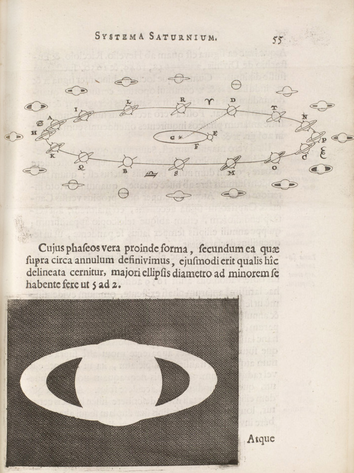 El primero en reconocer la verdadera naturaleza de los anillos de Saturno fue el astrónomo holandés Christian Huygens en 1655, utilizando un telescopio casero con 43 aumentos. Huygens, de acuerdo con la costumbre de la época, publicó su descubrimiento en forma de anagrama, cuyo significado reveló hasta tres años después: «Saturno está rodeado por un delgado anillo plano que no toca el planeta en ninguna parte y está inclinado con respecto a la eclíptica». Esta teoría fue publicada por Huygens en 1659 en la publicación Systema Saturnium, donde también anunció la existencia de una luna que gira alrededor del planeta, hoy en día conocida como Titán.