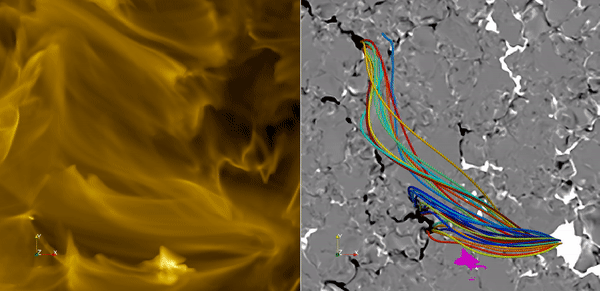 Figura 2: Resultados de la simulación numérica de las fogatas solares. Fuente: Chen et al. (2021), Astronomy & Astrophysics.