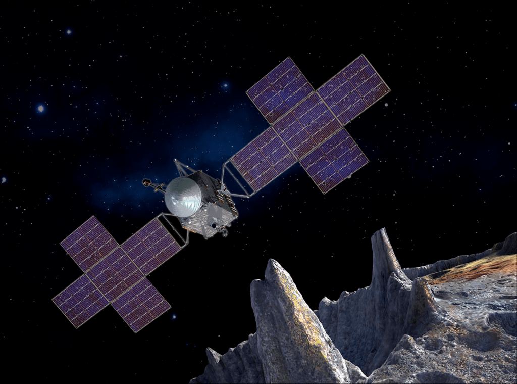 Imagen artística de la misión Psyche en la órbita de un satélite. Fuente: NASA/Wikipedia.