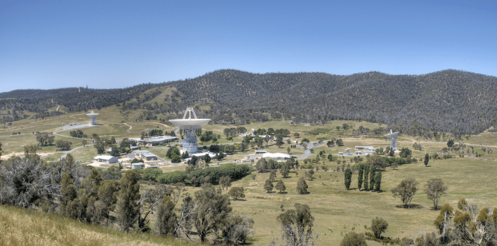 Las antenas que forman parte del DSN, ubicadas cerca de la ciudad australiana Canberra. Fuente: Wikipedia.
